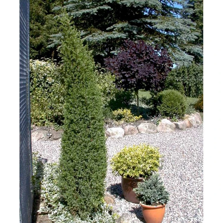 Stedsegrønt nåletræ som bliver op til 2 m højt. Denne sort er smal, søjleformet i sin vækst. Nålene er gråblå. Hårdfør, vindfør, sund og robust. Placeres som baggrund i havens bede i almindelig havejord. Det er en fuldt ud hårdfør plante til det danske klima. Planten kræver mellem gødning.