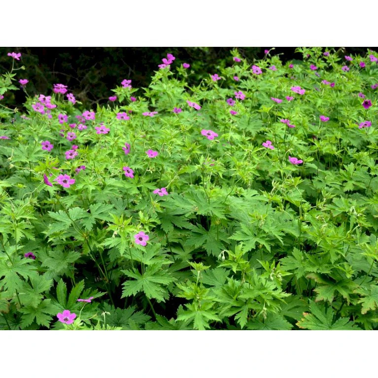 Juni – august. Purpurrøde blomster. Senere små røde frøstande.
