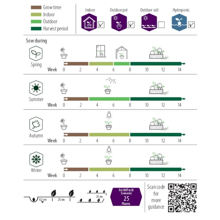 Frøene plantes med en afstand på ca. 25 cm.