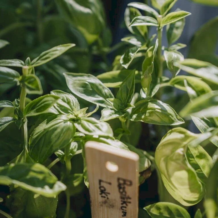 ‘Loki’ er et dekorativt og aromatisk krydderi, som er velegnet til pesto eller sammen med tomater og lidt revet parmesan.