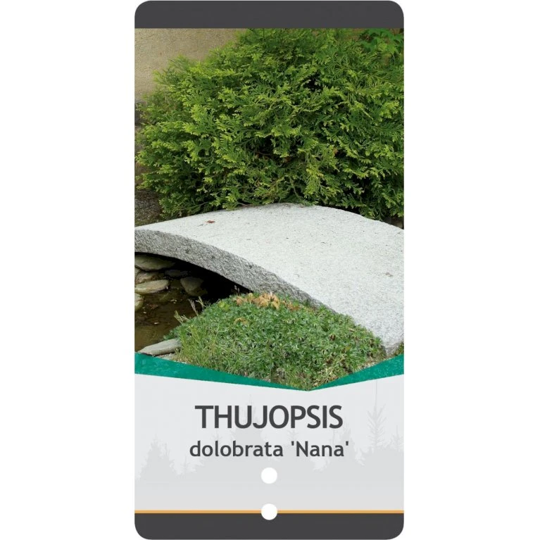 Lavt, bredt, stedsegrønt, busklignende træ. Kompakt og dværgagtig vækst. Bliver under normale forhold omkring 100 cm høj og 90 – 120 cm bred. Planten er langsomt voksende. Nålene er lysegrønne, skælagtige med hvid underside. Trives bedst i halvskygge. Koglerne er små og brune, bliver 1,5 cm store.