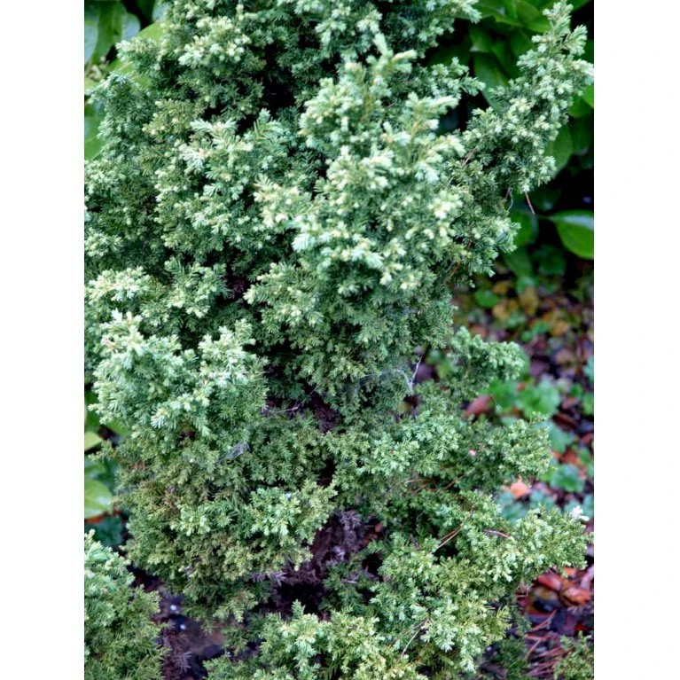 Stedsegrøn, meget langsomt voksende. Uregelmæssig tueformet vækst. Nålene bliver let bronze farvede om vinteren.