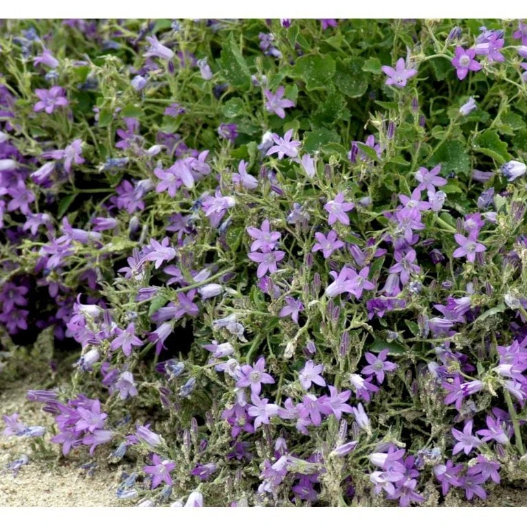 Juni-juli, ofte nogen efterblomstring i august-september. Lyst violette, klokkeformede blomster i stor mængde.
