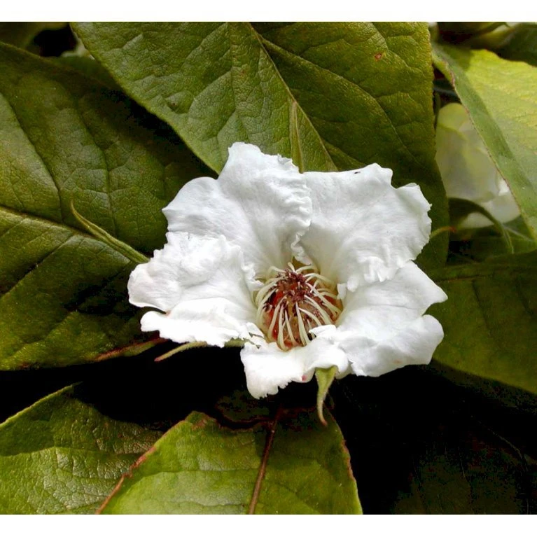 3 – 5 m høj og bred kroget tætgrenet træ. Bladene er grønne og ovalformede og med meget flotte gule efterårsfarver. Får ca. 5 cm. store hvide blomster maj – juni måned, hvorefter frugterne viser sig i oktober – november. Trives i sol – let skygge. Plantes i alm. havejord, tilføj gerne beriget spagnum. Plantes solitært – i grupper, eller som overstander i lavt bunddække. Frugten er spiselig. Det er en rimelig hårdfør plante til det danske klima. Planten kræver mellem gødning