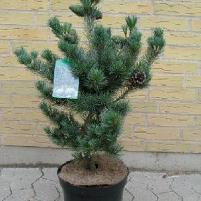 Meget dekorativ plante. Det er en stedsegrønt nåletræ der får lange, drejede nåle som bliver 4-5 cm lange samlet i kvaste. Nålene er blålige. Den kan bliver op til 10 højt. Kogler er 5-7 cm lange og rødbrune. Anvendes som solitært træ. Vokser i almindeligt havejord. Planten er fuldt ud hårdfør i det danske klima.