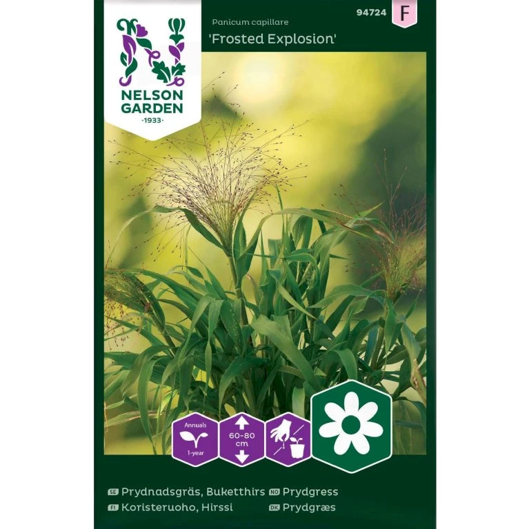 Lækker sort af hirse med dekorative fjerduske. Smuk i bede og potter sammen med sommerblomster og stauder eller som solist. Holdbar i buketter. Trives i næringsrig, veldrænet jord, er nøjsom.