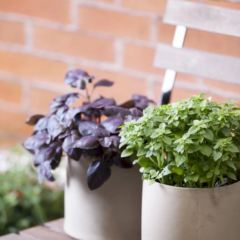 April-oktober. Lækre røde basilikum blade, der er velegnet til madlavningen.