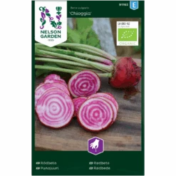 Økologiske frø. En lækker, bolsjestribet rødbede med en sødere smag end den almindelige rødbede. Velegnet til at spise rå, kogt med lidt smør eller til syltning. De unge blade kan anvendes på samme måde som bladbede. Så ikke for tidligt! Planterne kan gå i frø, hvis de udsættes for frost om foråret. Så giver de intet udbytte. Trives i næringsrig, muldrig og fugtighedsbevarede jord. Udtyndes tidligt. Gør jorden porøs omkring planterne. Gødes med kaliumrig gødning.
