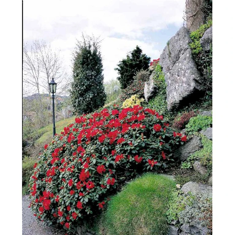 Vejledning: Lave rhododendron anvendes gerne gruppevis eller enkeltvis som forgrund i surbundsbede.