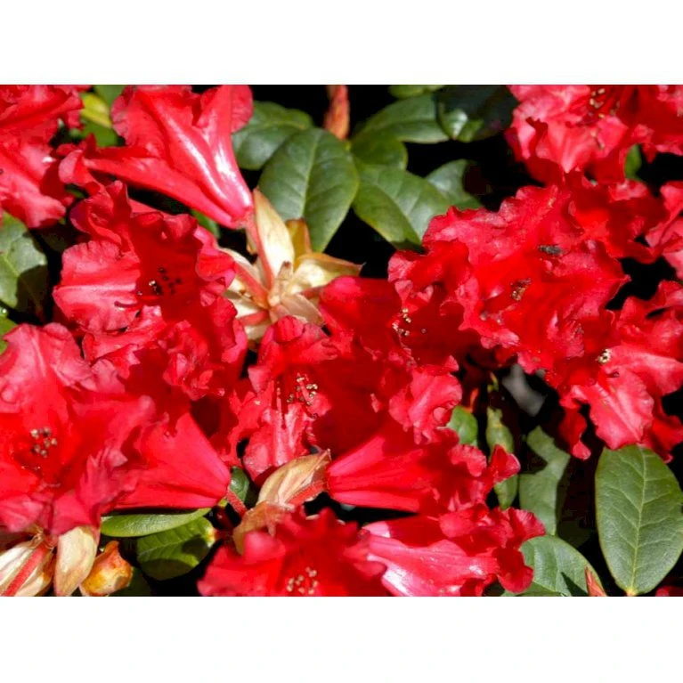 Blomsterfarve: Store, klokkeformede blomster i ren og klar rød. Meget rig blomstring, som næsten kan dække løvet.