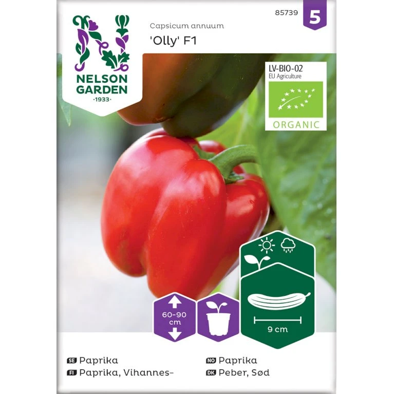 ‘Olly F1’ er en saftig og sød peberfrugt, som kan nydes ovnbagte med løg, zucchini, tomater og lidt olivenolie.