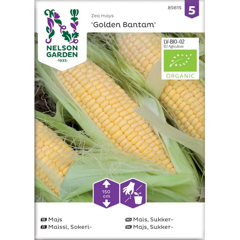 Frøposen indeholder økologiske sukkermajsfrø.