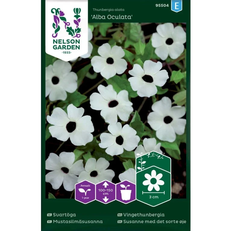 Denne sort har masser af smukke hvide blomster med et sort øje. Voksemåden er slyngende og kræver støtte mod espalier. Den dyrkes her i landet som etårig, men er egentlig en flerårig plante, og foruden at blive anvendt som sommerblomst udendørs, f.eks. på altan eller terrasse, kan den anvendes som potteplante i et sydvendt vindue. Trives i næringsrig, velgødet jord. Vandes rigeligt.