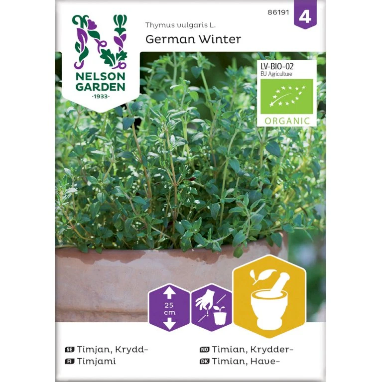 ‘German Winter’ er et dekorativt og aromatisk krydderi, som er velegnet til smagsforstærkning i diverse madretter, eller som krydderi til ovnbagte kartofler.